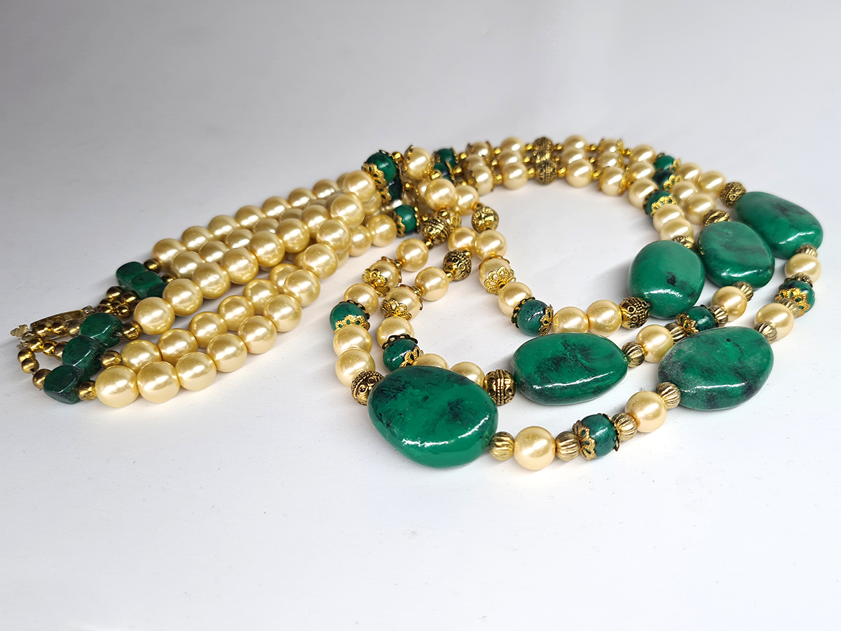 Tek nakon što je sve to odrađeno završavamo ogrlicu dodavanjem ostalih komponenti, što su u ovom slučaju staklene biserne perle te ostale metalne komponente.
