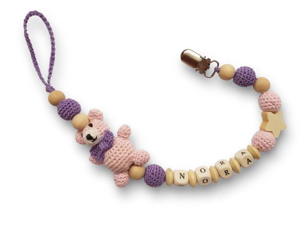 Coccinella heklane vezice za dudu izrađuju se u bojama po Vašem izboru, a također po želji mogu sadržavati željeno ime. Načinjena je od drvenih perli bez boja i lakova, te stopostotnog tankog pamučnog konca, ručno heklanog oko svake pojedine perle.
