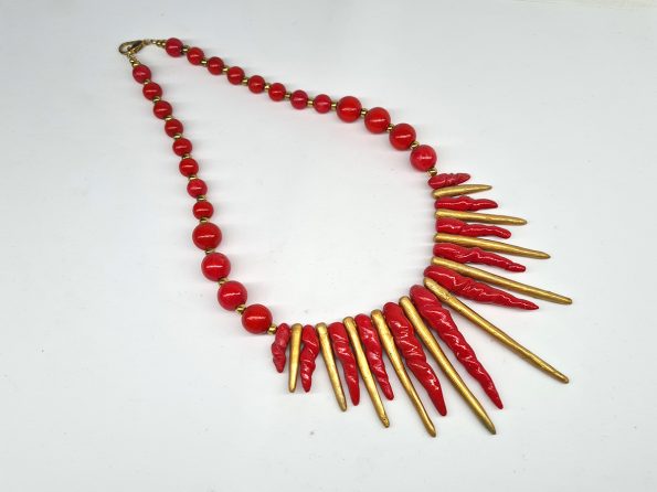 Posebna unikatna ogrlica čije su glavne komponente ručno rađene od Das mase te oslikane akrilnim bojama i lakirane za dodatnu zaštitu. Ukupni dojam je zaokružen dodavanjem ostalih metalnih komponenti.