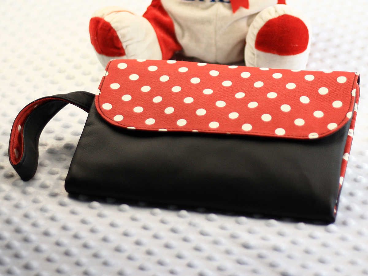 Preklopna elegantna torbica za nošenje pelena, vlažnih maramica i raznih potrepština za bebe ali i mame s obzirom na tri pretinca od kojih se jedan zatvara patentnim zatvaračem, te dodatnim ušivenim utorom za vlažne maramice.