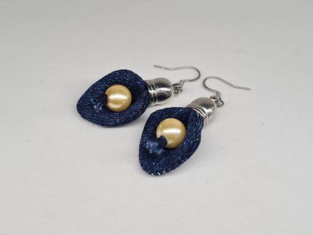 Lagane naušnice izrađene od traper materijala ukrašene bisernom perlom.